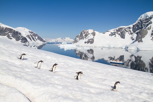 Van de Zuid Shetland eilanden vaart u naar de westkust van Antarctica en ziet u onderweg flinke ijsbergen en met ijs bedekte fjorden. Zeevogels, pinguïns, zeehonden en walvissen zwemmen met het schip mee. De zuidelijke reis biedt bezoeken aan o.a. Livingston eiland, Port Lockroy,  Petermann eiland, Paradise Bay, Cuverville en Deception eiland. U doorkruist ook het Lemaire kanaal.